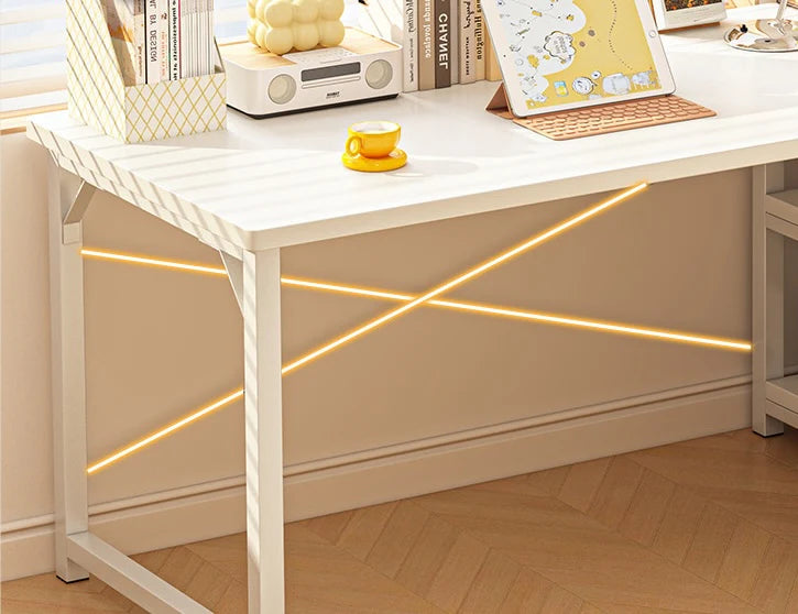 Transform your workspace with the Joyous Office Desk, a smart corner desk solution designed to optimize productivity and organization in your home office. The integrated storage rack on the left provides convenient access to essentials while maximizing your floor space.